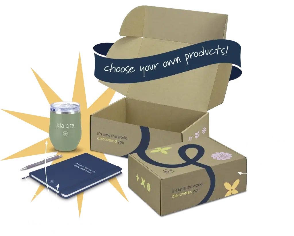 Once you decide what promo products and branding you’d like to include, we will provide a clear timeline. A lot depends on whether the products you want are in stock, or how long it will take to get them if they’re not. If you have a specific deadline you need your gift boxes by, let us know and we can suggest how best to achieve it.